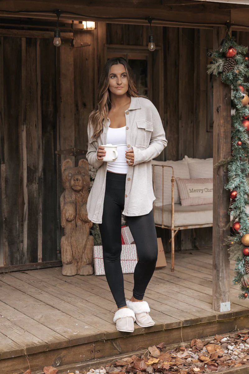 Taupe Waffle Knit Shacket